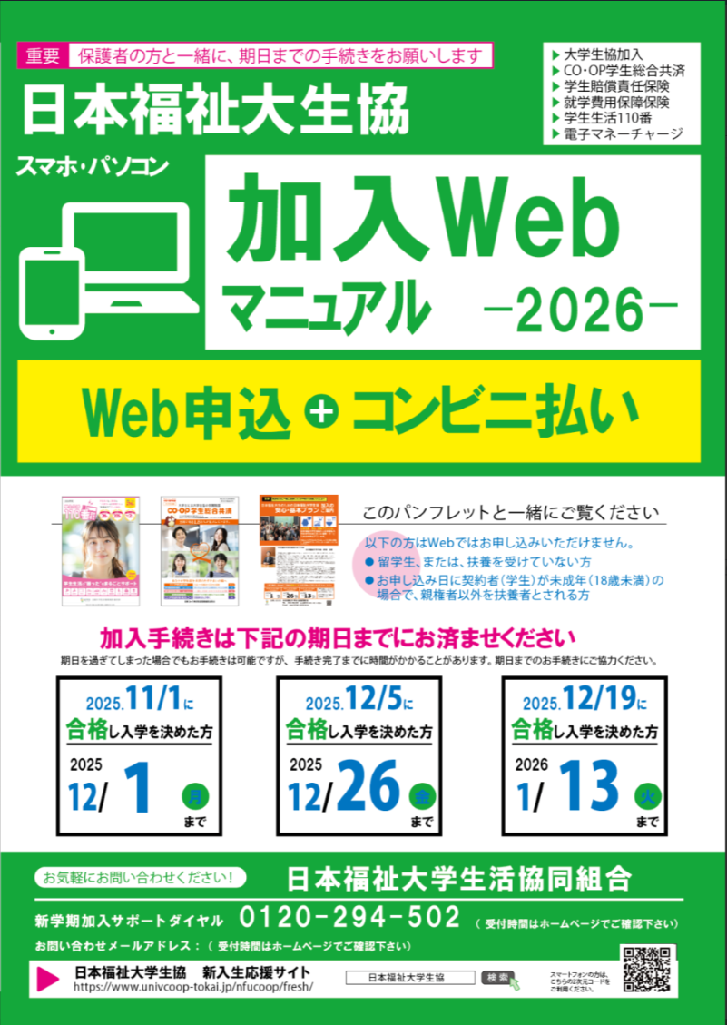 日本福祉大学生の大学生活の安全・安心と学業継続のために、CO・OP学生総合共済にご加入ください。