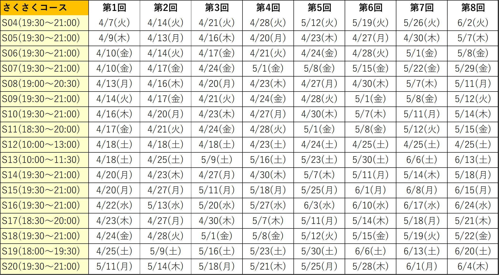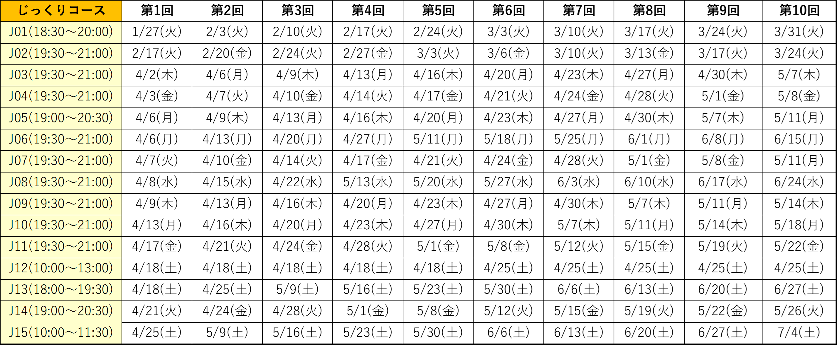 こちらの日程表をご確認ください。お申し込み時に、日程を確認します。