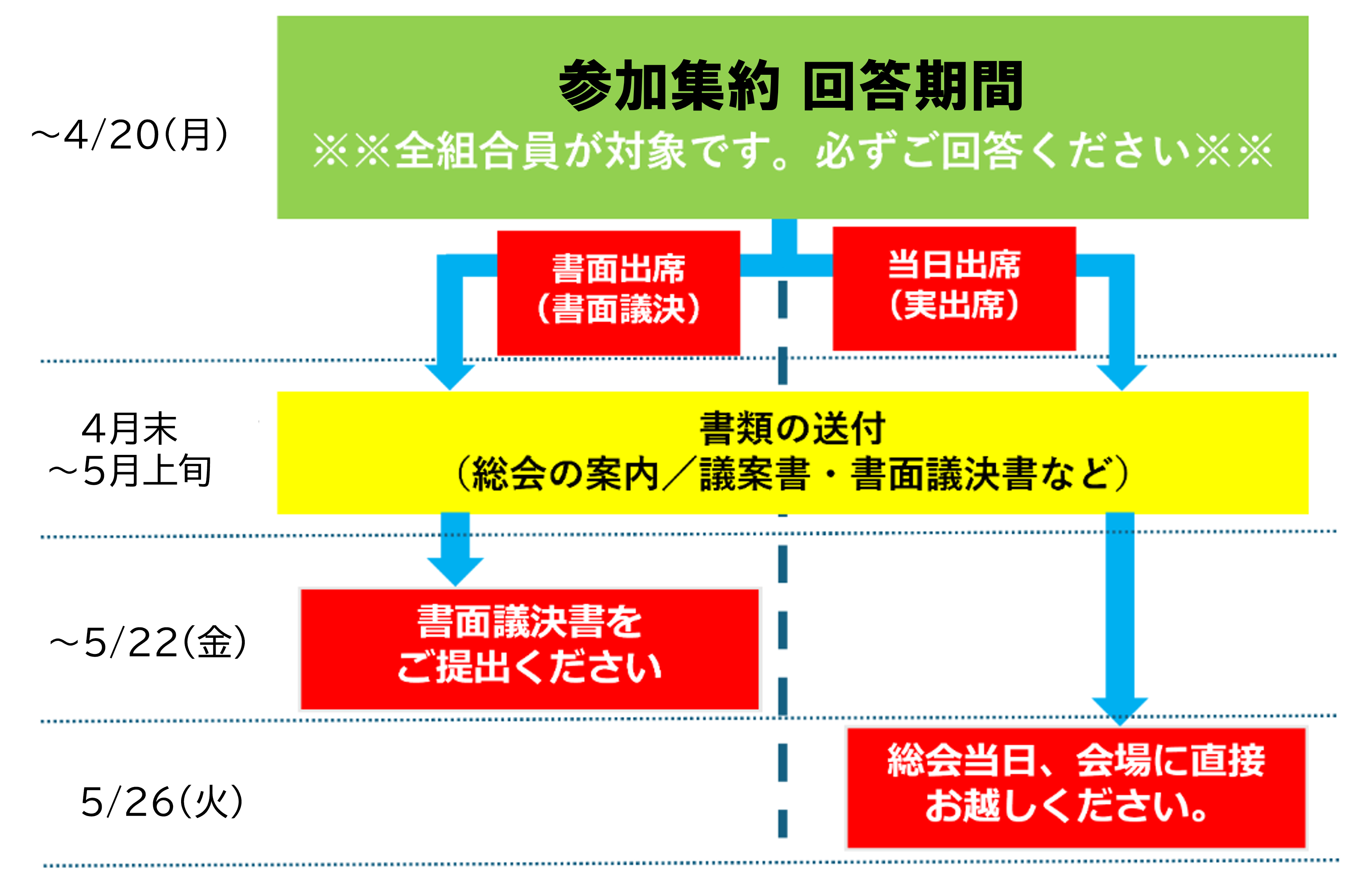 *参加集約後、書面議決書を配布いたしますので、5/22(金)までに書面議決書をご提出ください。当日出席の方