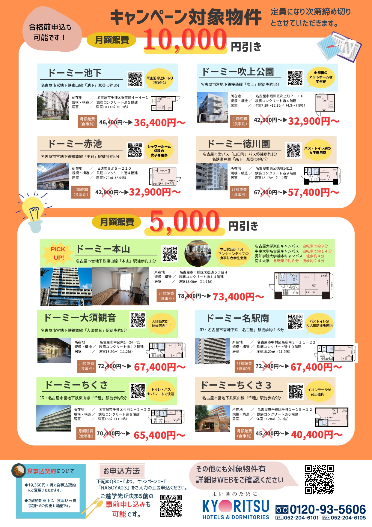 名工大生協では、下記前期・後期入試日に合わせて住まい相談会を開催予定です。