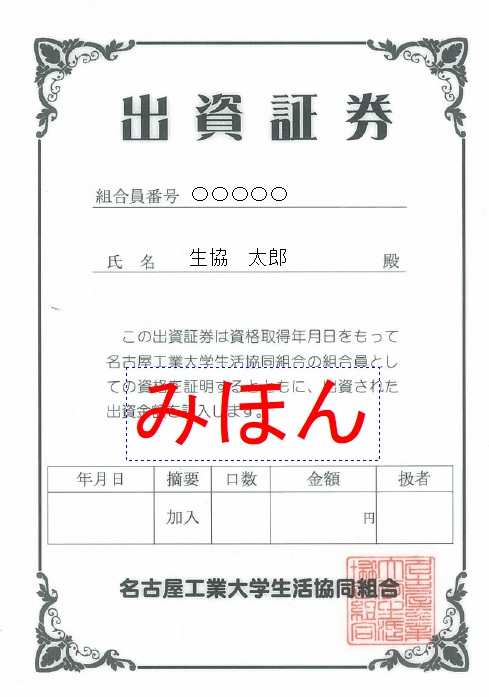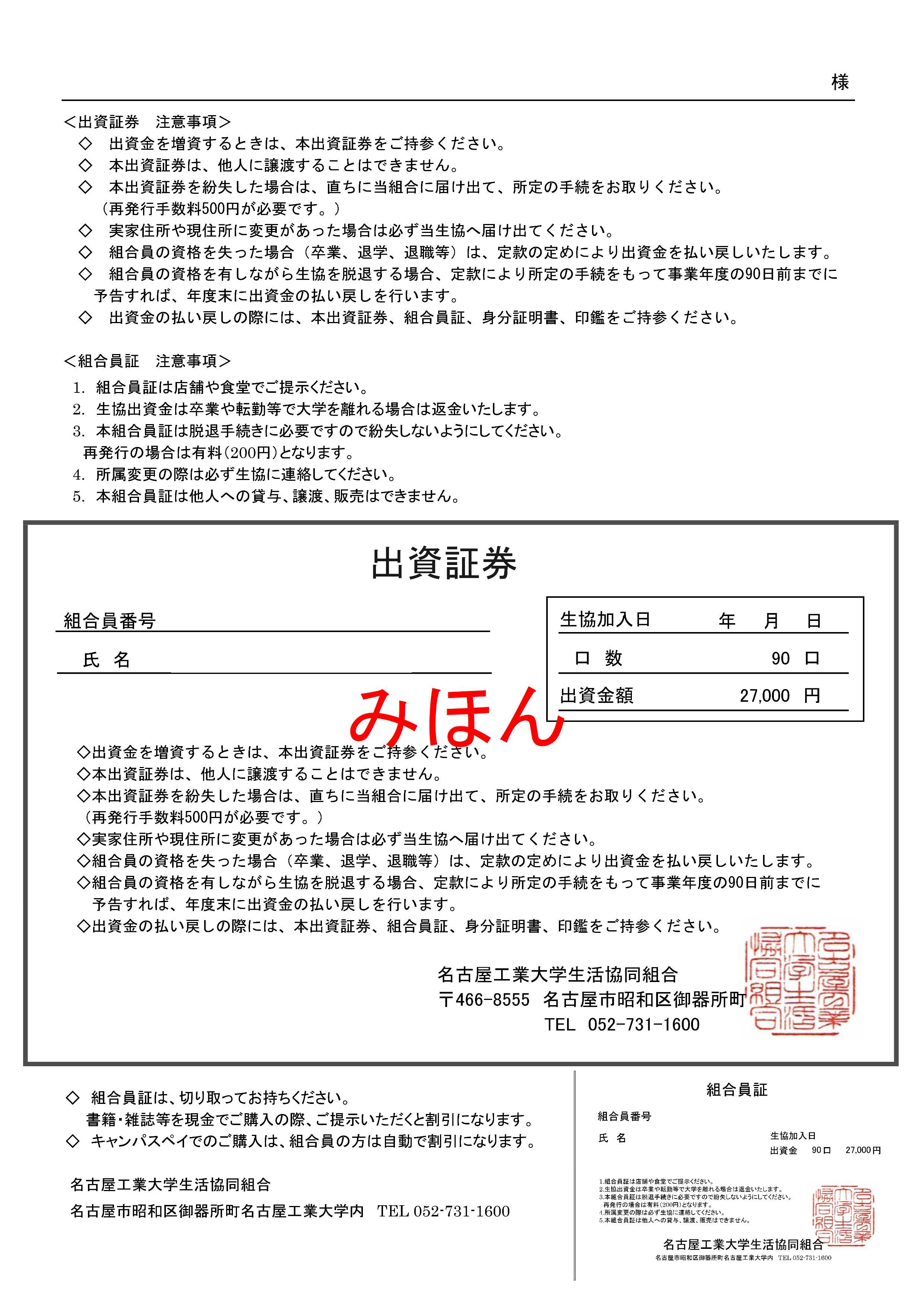 生協の「組合員証」「出資証券」はそのまま有効です。