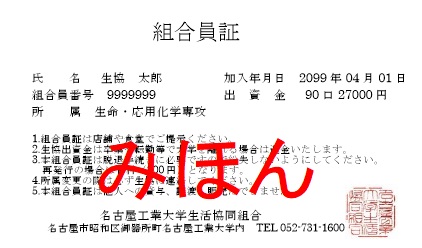 生協総務部(大学会館2階 カフェテリア出口横)電話:052-731-1600(平日10時~17時)