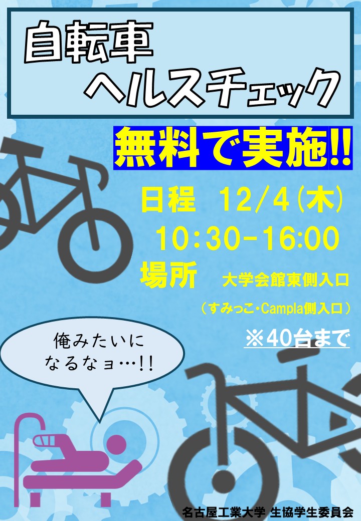 名工大生の安全な移動のために、無料の自転車点検会「自転車ヘルスチェック」を開催します!
