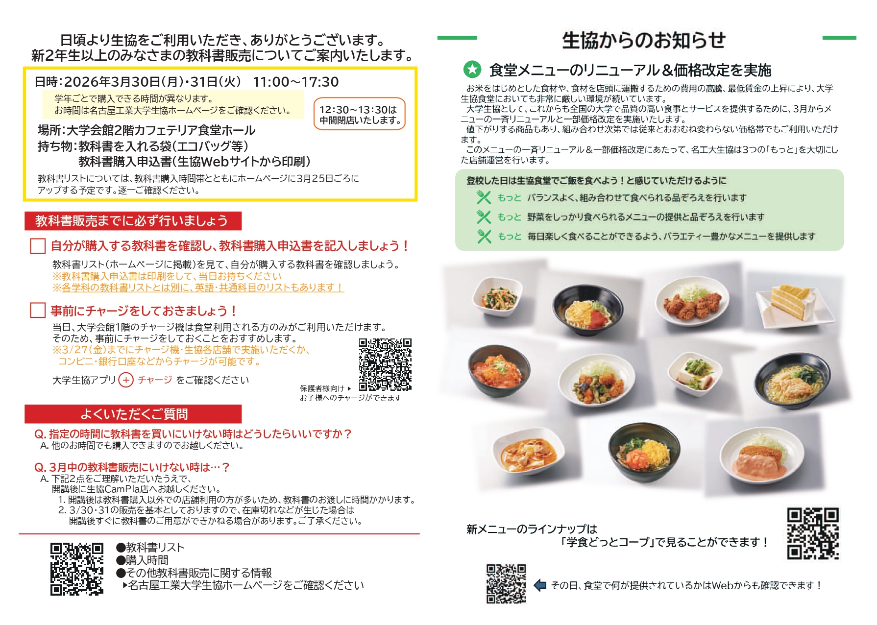 2026年度前期在校生教科書販売について