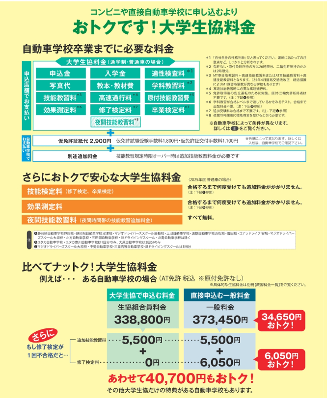 ※大学生協での自動車学校の申し込みは、生協に加入している必要があります