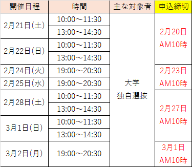 | 合格種別 | 生協の 資料発送時期(予定) |