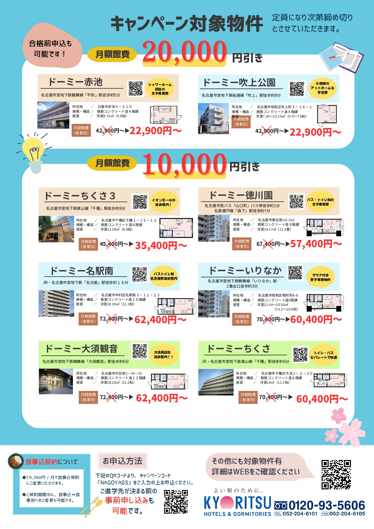 「株式会社共立メンテナンス」の物件で、朝・夜の食事がついています。女性専用物件もございます。対象物件が月額館費が最大20,000円引のキャンペーンも実施中です!!