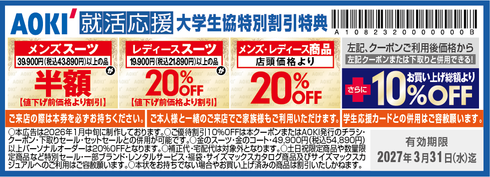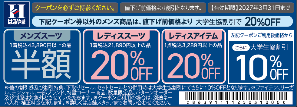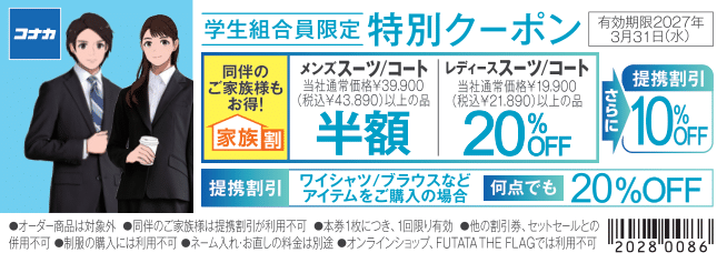 学生・教職員組合員、ご家族もご利用できるクーポンです