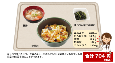 丼を選んでも野菜の摂取量を意識した組み合わせ
