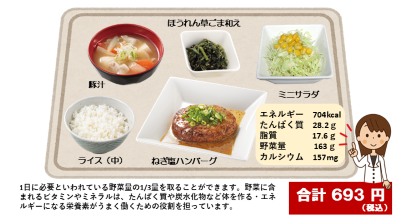 野菜が160gも取れる、ねぎ塩ハンバーグとの組み合わせ