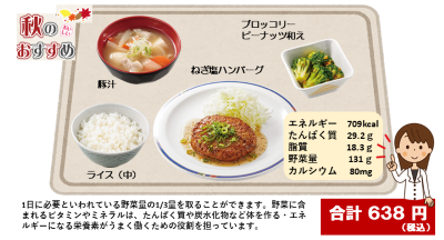 ねぎ塩ハンバーグと季節の総菜との組み合わせ