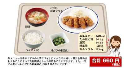 アジの大葉フライと野菜が1日の約1/3取れる組み合わせ