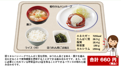 野菜が150gも取れる、照りタルハンバーグの組み合わせ