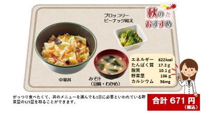 ちょっぴりヘルシー、野菜たっぷり中華丼との組み合わせ