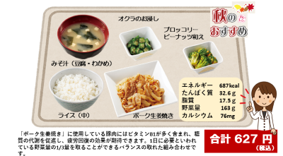 肌寒い季節になってきました。季節の変わり目で体調を崩しやすくなるので毎日の食事をバランス良く食べましょう!