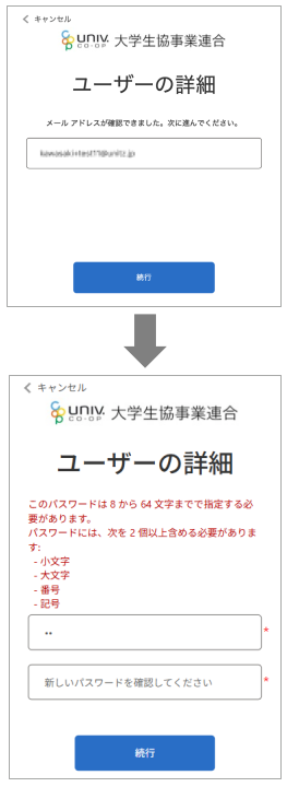『大学生協アプリ』で使用するパスワードを2回入力してください。