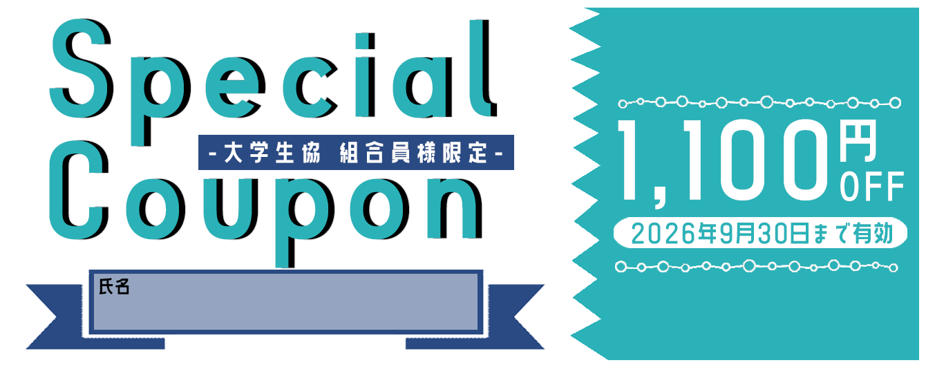 ★下記からダウンロードして印刷したクーポンに大学名・学部・氏名を記入の上ご持参下さい。