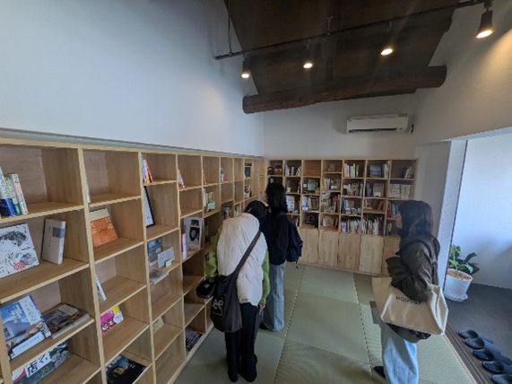 あり、学生が勉強しながら本を楽しめるといったスペースで、5班の学生は管理している方に質問し