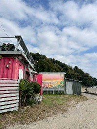 海沿いの新しいカフェであるChou chou lunを訪問しました。インスタグラムなどのSNSの積極的な活用や、実際にインフルエンサーが訪れており、それが来客数の増加に繋がっていることなどを伺いました。一方でカフェの開店にあたって、一帯が騒がしくなってしまうことへの近隣住民の懸念の声があったというお話がありました。温泉地区の活性化にあたっても、近隣住民への悪影響がない形で行わねばならないことを実感しました。