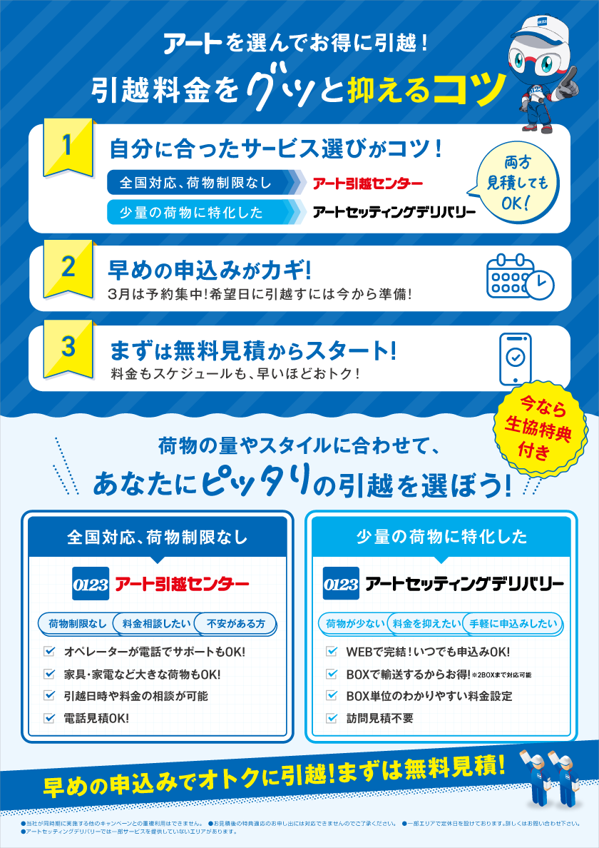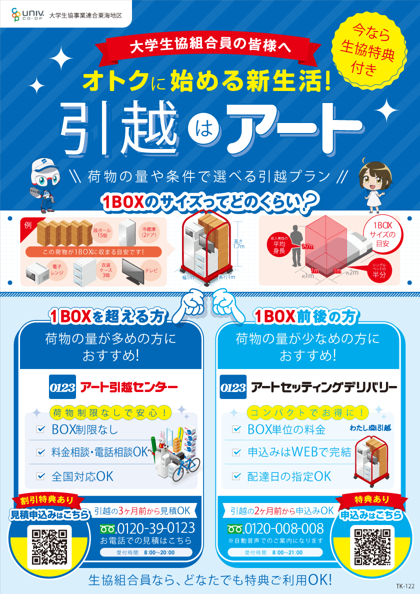 新入生、卒業生の方も引越はなかなか一苦労です。プロに任せて、安心して、新しい生活の準備をすることをお勧めします。教職員様も是非ご利用ください。