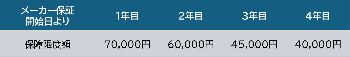※修理代金が経過年数保障上限額を超える場合には、超過修理代分はご負担いただきます。免責金2,000円(自己負担)