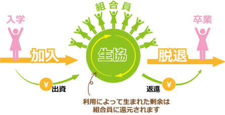 生協出資金は卒業時に定款の定めに基づき返還いたします。