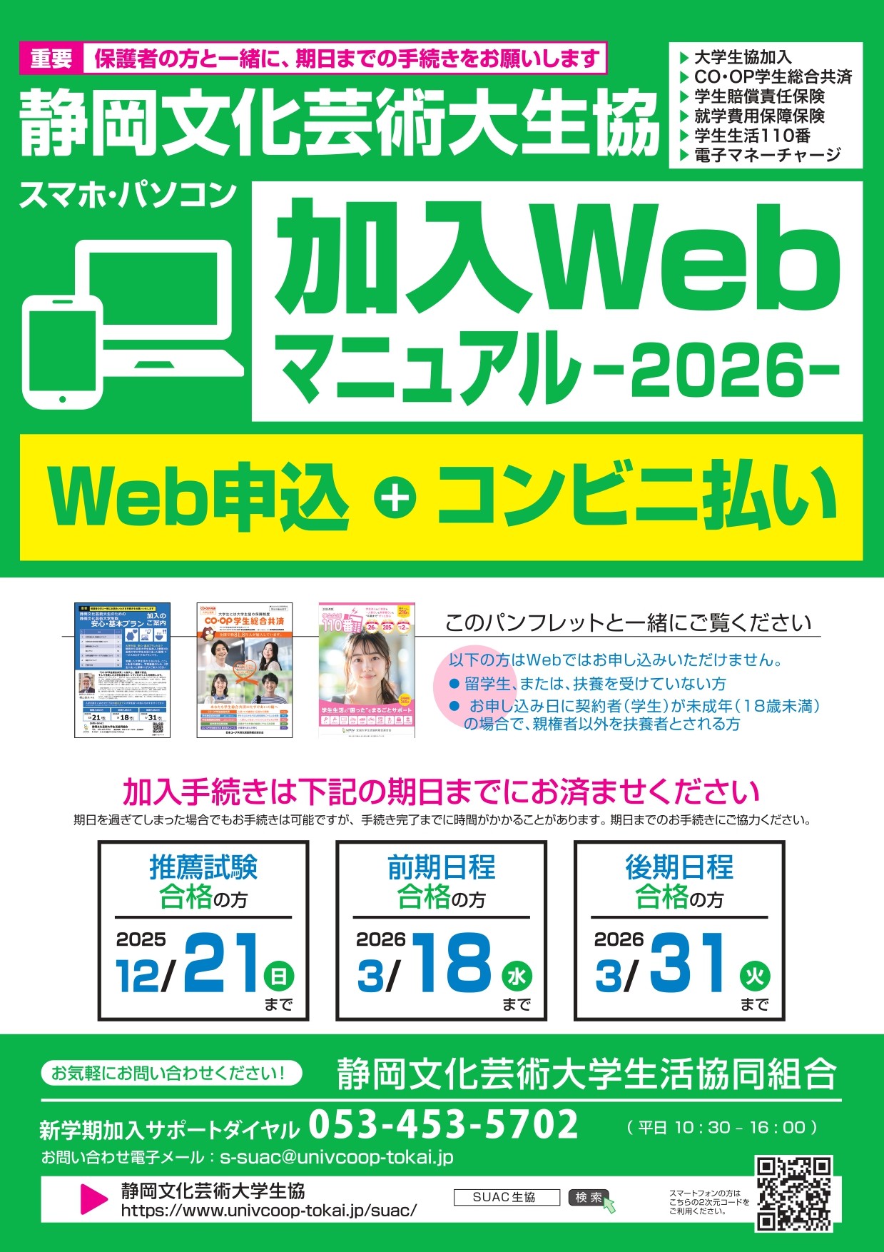 加入の手続きはWEBで行います。※在校生の方は生協店頭までお問合せください。