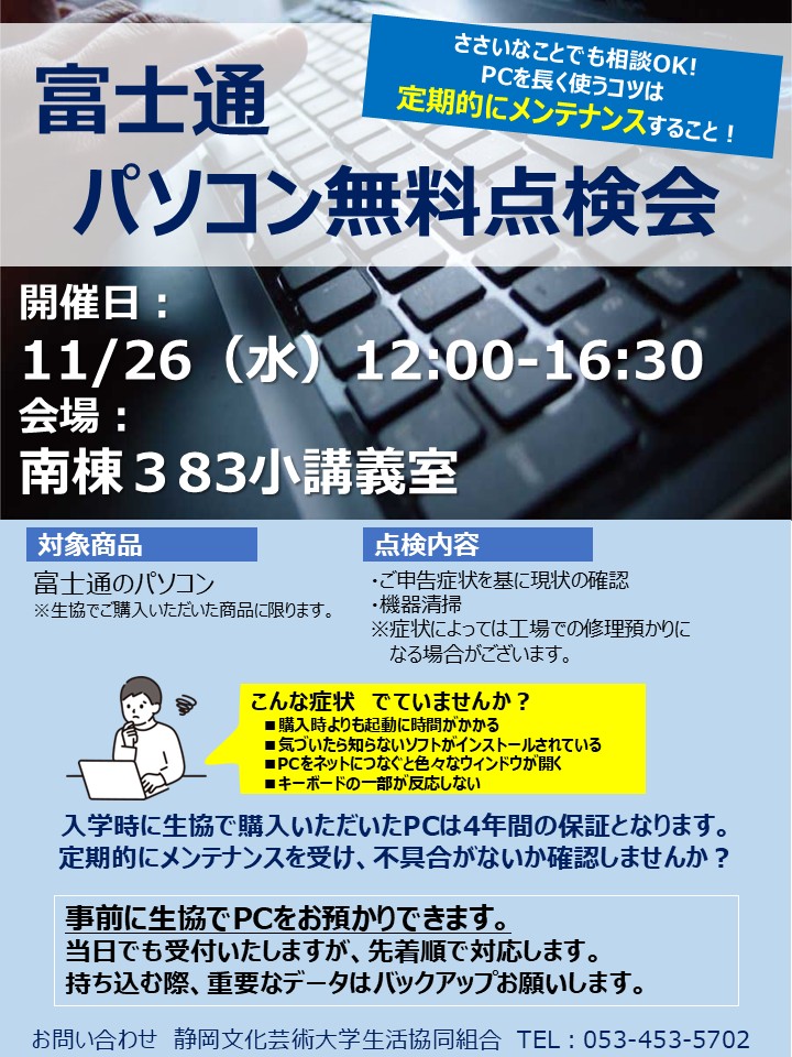 - 11/26 富士通PC点検会!メンテナンスしましょう!@南383