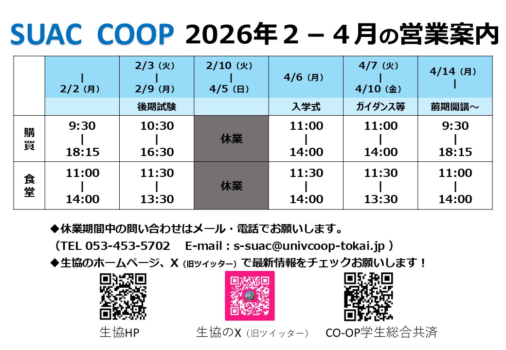 2-4月の営業時間について