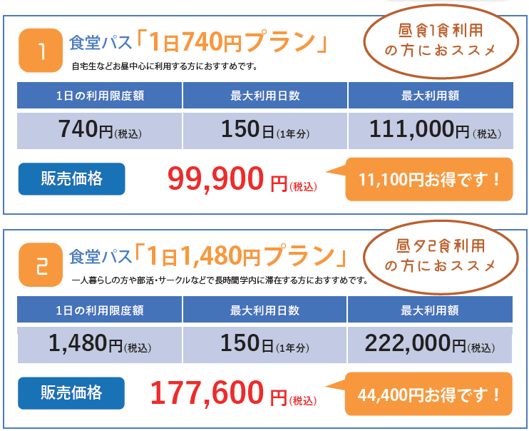 ④自宅生、自宅外生など利用頻度によって2つのプランを提案。