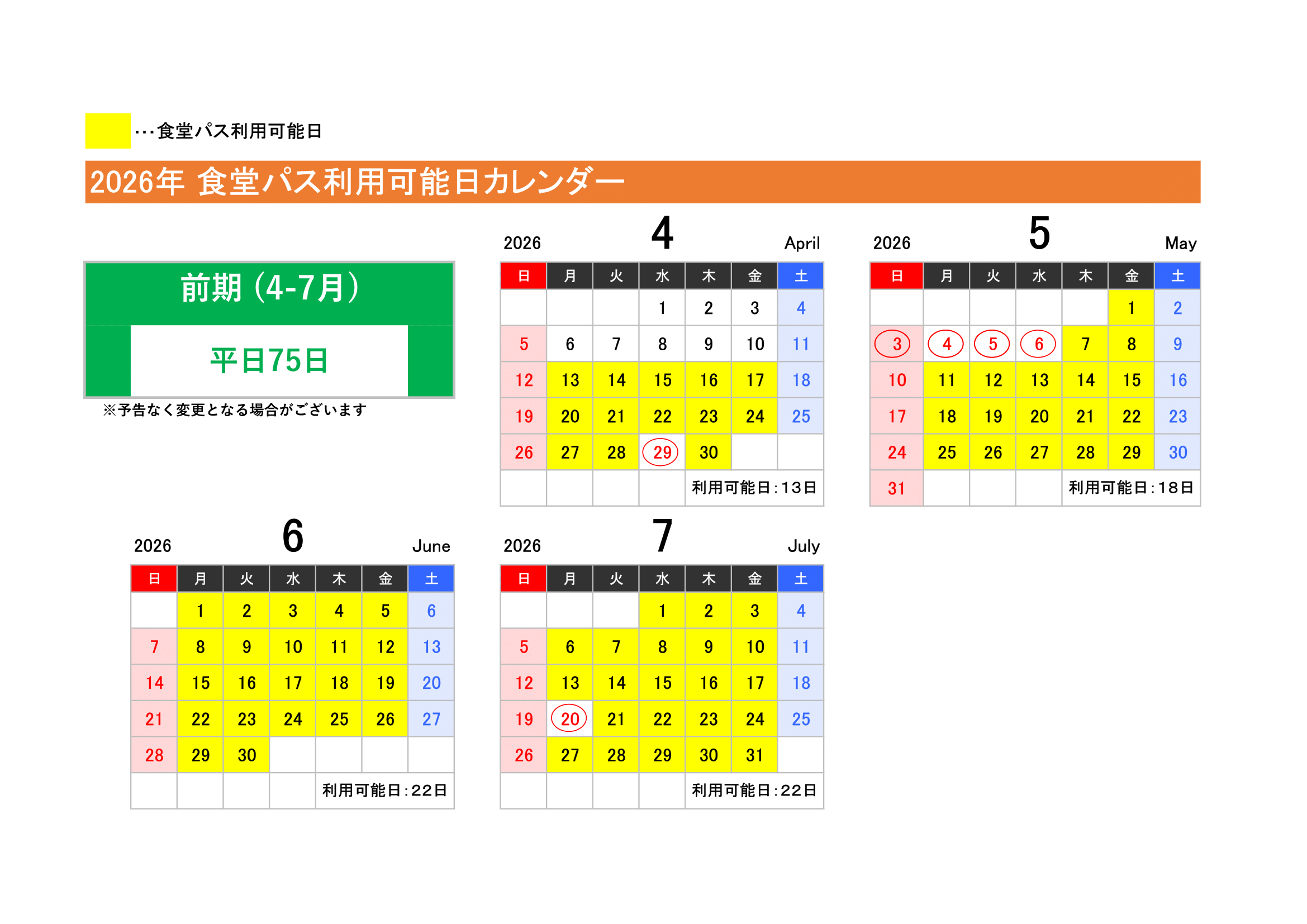 ※食堂パス提供日以外でも生協食堂は夏休み・春休みなどに営業しています。キャンパスペイまたは現金にてご利用ください。
