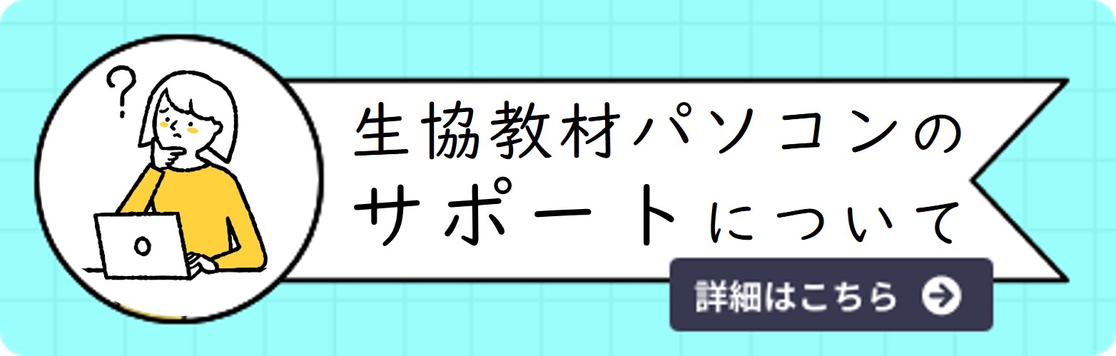 また、入学時に「生協オリジナルパソコン」を購入いただいた方は4年間のメーカー保証・動産保証が付帯しています。