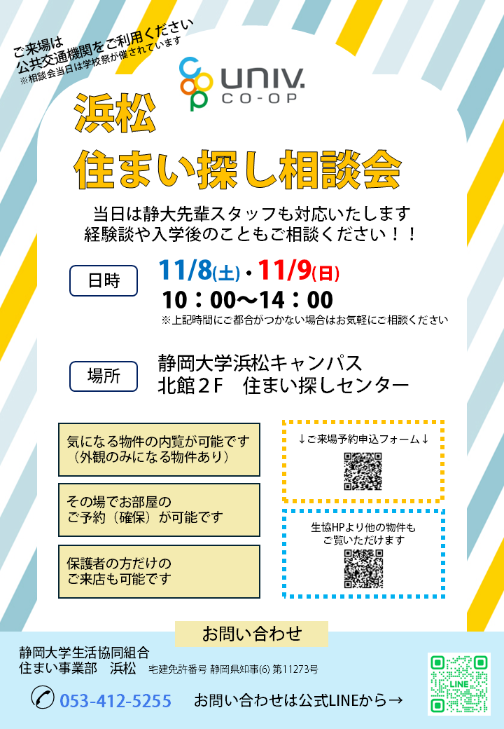- 【静岡大学生協】11/8(土)・9(日)住まい相談会開催【浜松】