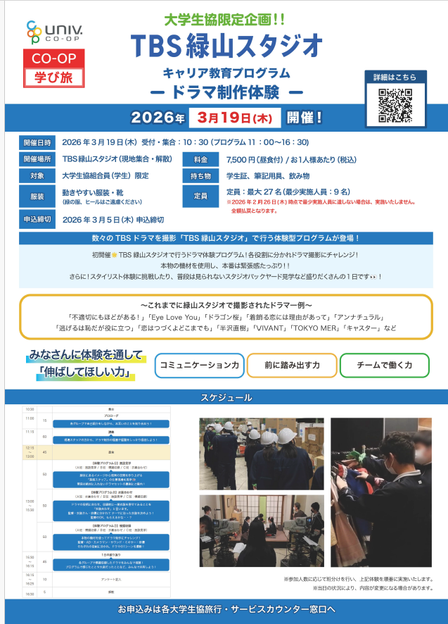 TBS緑山スタジオ キャリア教育プログラム ー ドラマ制作体験 ー