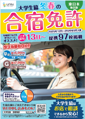 大学生協では生協提携自動車学校と共に、毎年1万人を超える大学生の免許取得をお手伝いしています。
