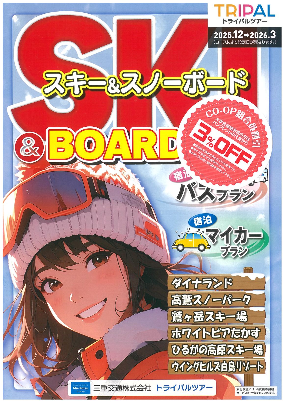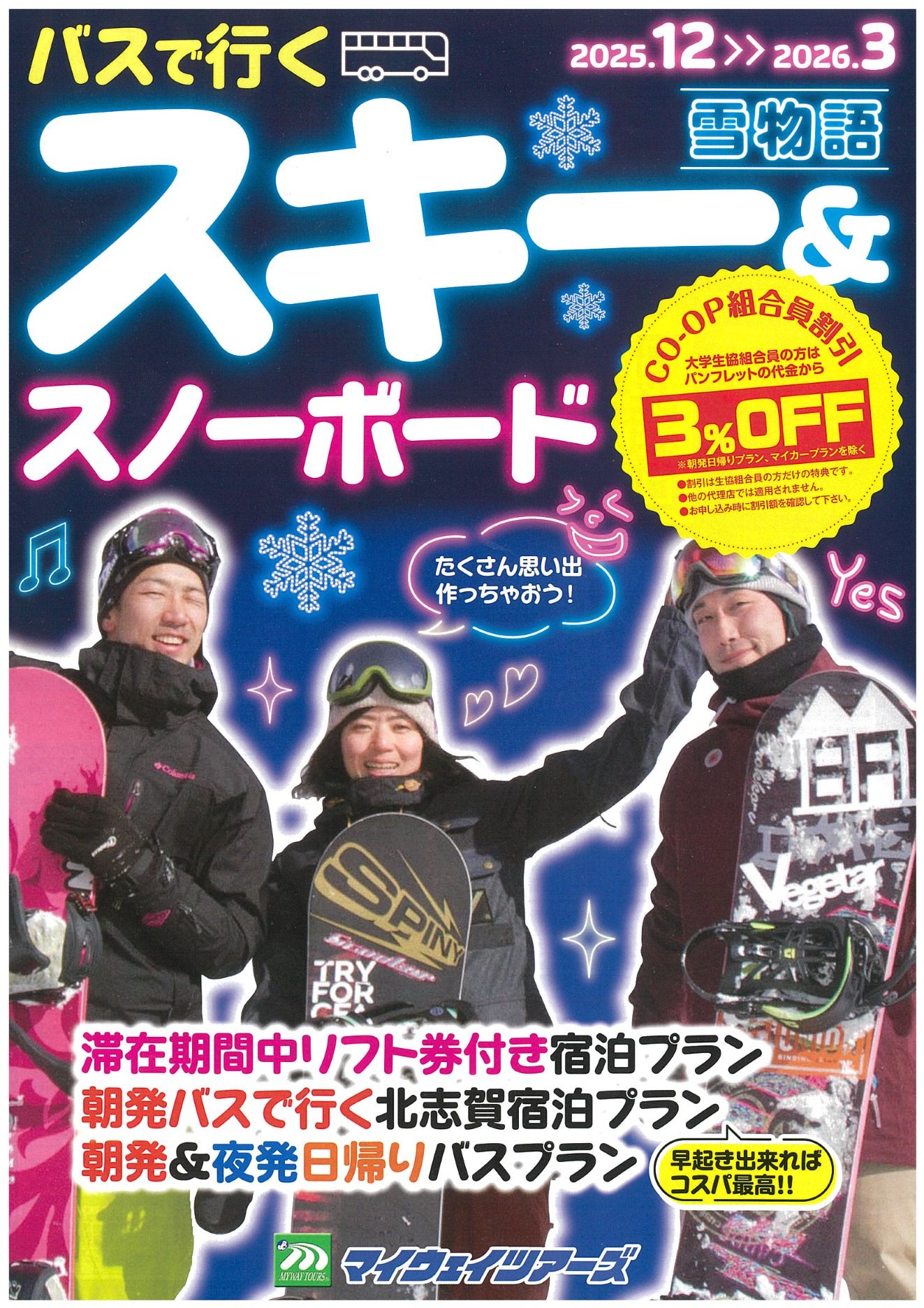 名古屋駅発着のバスプラン・マイカープランはこちら。大学生協にてお申込みいただくと「CO-OP組合員割引 3%OFF」が適用になります。
